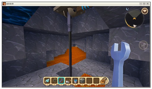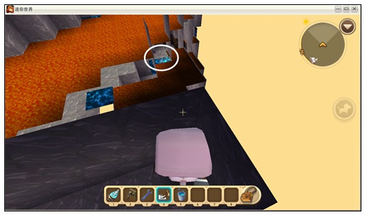 先去岩浆附近寻找蓝钻矿脉,找到之后先在钻石周围的岩浆上铺条能走的路,然后找到对应的位置,拿出准备好的推拉机械臂和开关放置在钻石矿正上方的洞顶上。然后打开开关,推拉机械臂就会将钻石矿捞上来,这一步有点难度,因为钻石矿的位置不是那么好把握的。捞上来后就可以用钻头挖矿了。