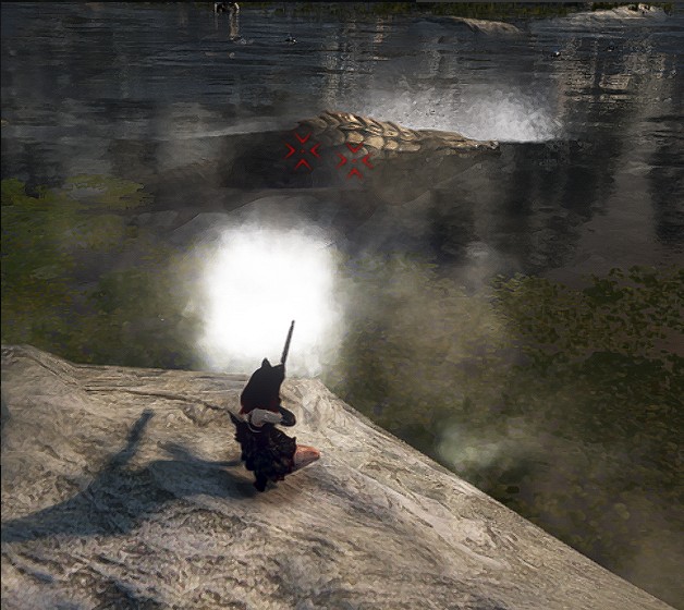 不管是要直接解决鲶鱼人还是要避开他们,在周围到处逛一逛,就能看到正在游泳的淡水鳄鱼了。
