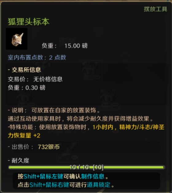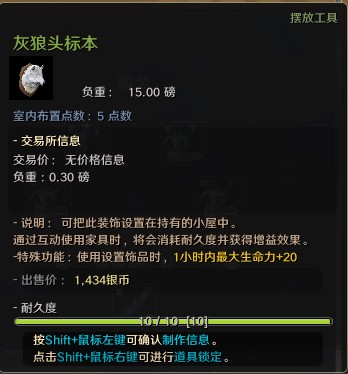头部标本可以设置在居住地,进行互动(R)的话,可以获得增益效果。