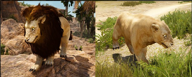 阿利赫椰子森林的北部有巨大的母狮子、巨大的狮子和巨大的山羊。