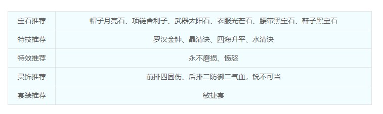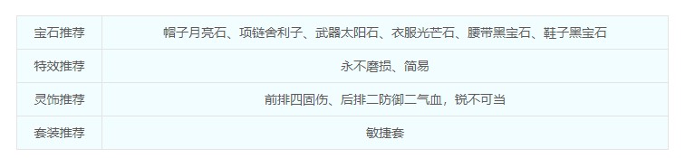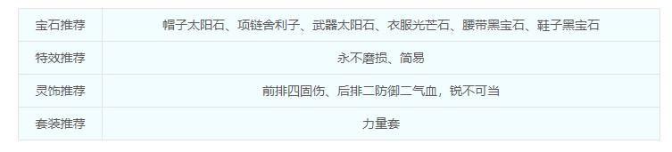 帽子月亮石、项链舍利子、武器太阳石、衣服光芒石、腰带黑宝石、鞋子黑宝石 |