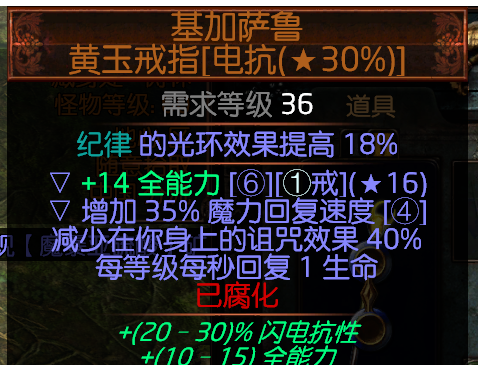 接下来是整个BD最核心的装备最主要的属性就是每等级增加每秒回复1生命90级就相当于多了90的秒回,所以需要绑定两个来增加秒回。
