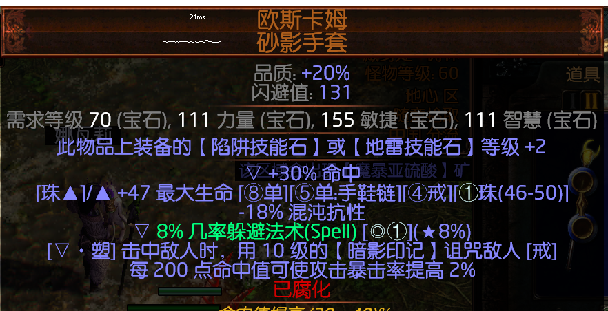然后是手套选择的是加8%躲避法术,没啥好说的。
