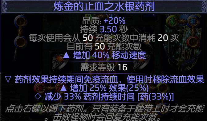 水银药剂增加移动速度,属性要求增加25%效果,能够增加10%移动速。后缀随意,或者选择增移动速度的词缀