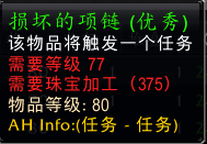 损坏的项链任务奖励是1个达拉然珠宝代币。损坏的项链这个道具触发珠宝加工任务的,需要等级77级、珠宝专业技能等级375才能做,泰坦神铁粉末是泰坦神铁矿石炸矿的产物,届时炸矿的人很多,这种材料也不会缺的。
