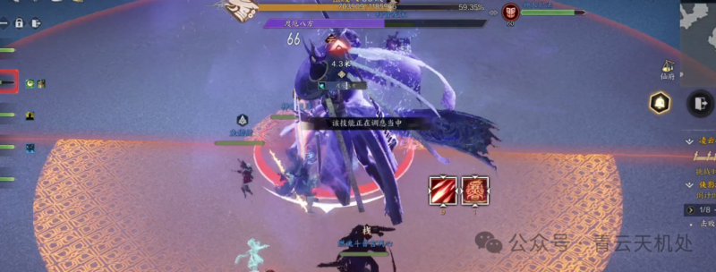 应对:走位规避剑气,被黑无常追击的玩家提前站在红圈后。白无常的射线会占据上中下其中2个位置,去安全位置规避