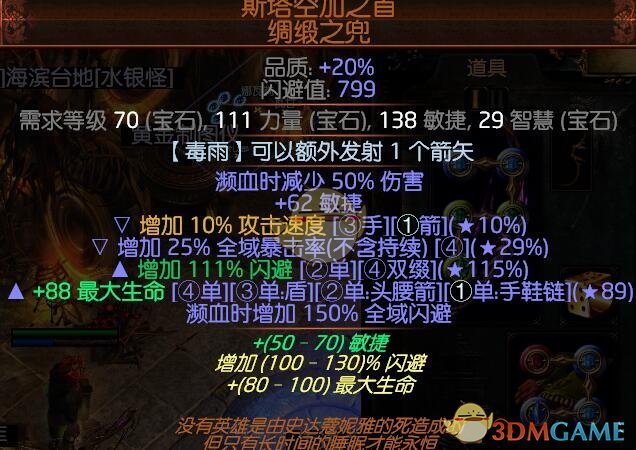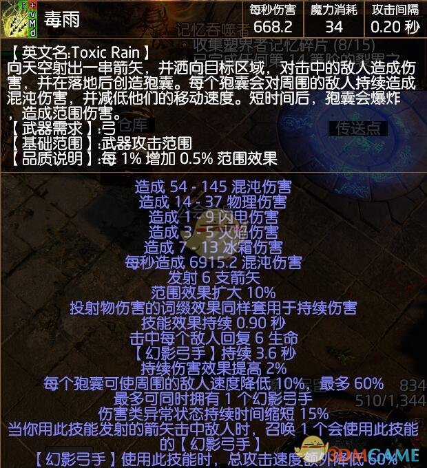 衣服:5L 毒雨-虚空操纵-幻影射手-邪恶投掷-急速腐化(有条件6L可以带个赋予,凋零之触,或者稀有度增幅等等都可以)