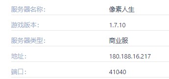 我的世界里面有很多的服务器,每个服务器都有自己的独特的玩法,今天给大家带来的服务器的名字叫:像素人生,那么下面就是这个服务器的一个具体的IP地址.