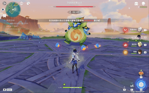 本次攻略的关键就是使用火元素攻击点燃全部火榴果,所以可以带点AOE火角色,不过火榴果本身有嘲讽系数,玩家攻击会锁火榴果,所以不用担心全打在boss身上点燃不了火榴果的情况啦