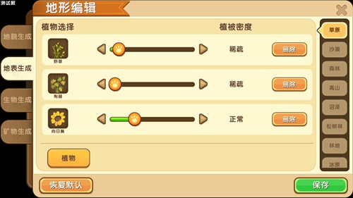 ②地表生成:基本上就是选择地表植被和植被密度,终于能创造梦寐以求的向日葵花田了~