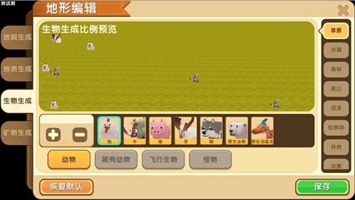 ③生物生成:先选择生物类型,再选择生物生成比例,不仅是动物,就连怪物也能生成;