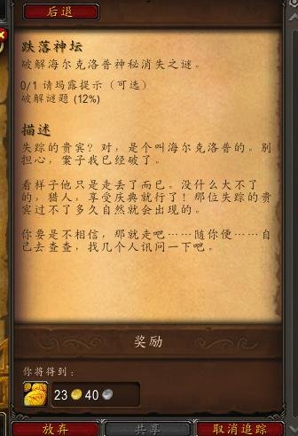 这两个任务都是在艾泽拉斯之谜下面的,做完上面2个任务之后,我们继续回到塔纳利斯NPC:阿莉克斯这里,接到任务:杰出神探。