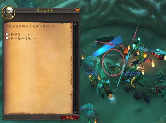 5、使用玩具【派利斯火炬】,靠近npc斯克雷普斯这里的土堆,会在这里发现尸体,任务进度达到60%。