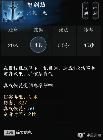 怒剑劫:对于此流派来说是低伤害技能,点天书分支后可重置贯虹