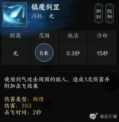 镇魔剑罡:低伤,击飞,可重置贯虹