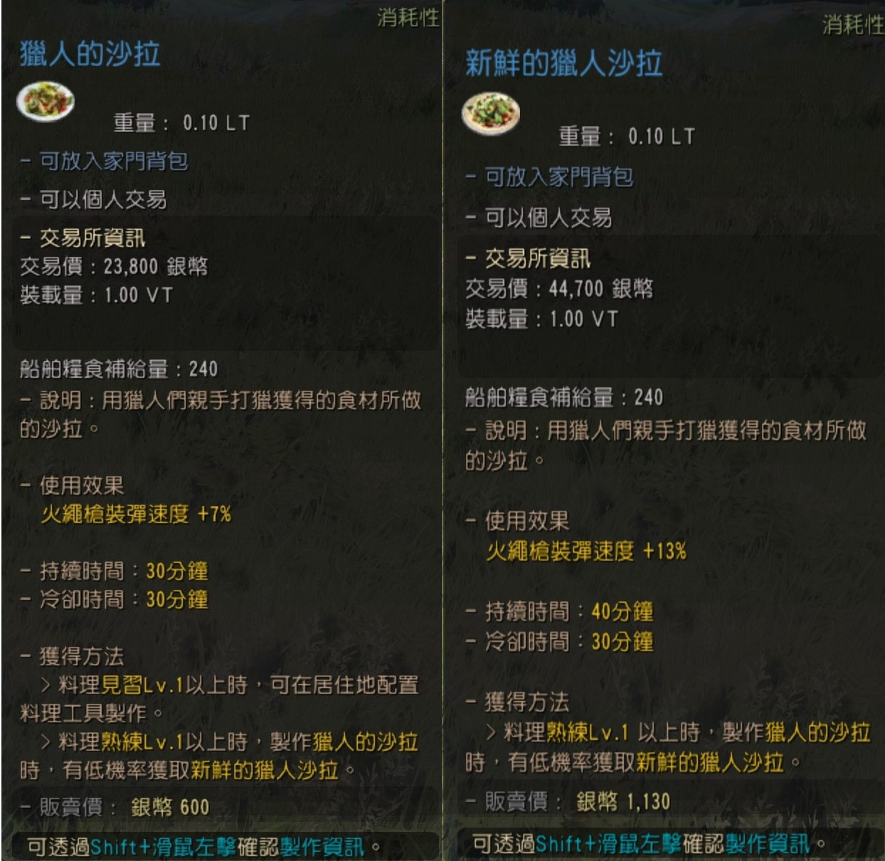 因为猎人的沙拉与新鲜的猎人沙拉会增加火绳枪装弹速度,