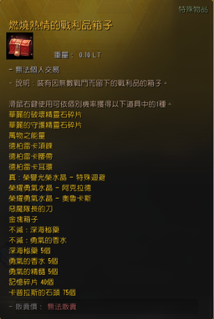 再次提醒: 通过“希尔比亚的证物”兑换的“燃烧热情的战利品箱子”里包含的物品种类,和直接奖励的箱子是一样的哦!