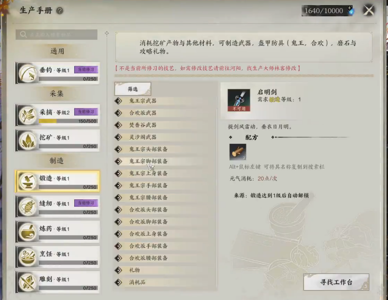 5. 生产制造: 自给自足! 前期生产的装备可以过渡,后期需要搞到生产秘籍才能做出高级紫色装备,要么自己肝,要么去交易行买。