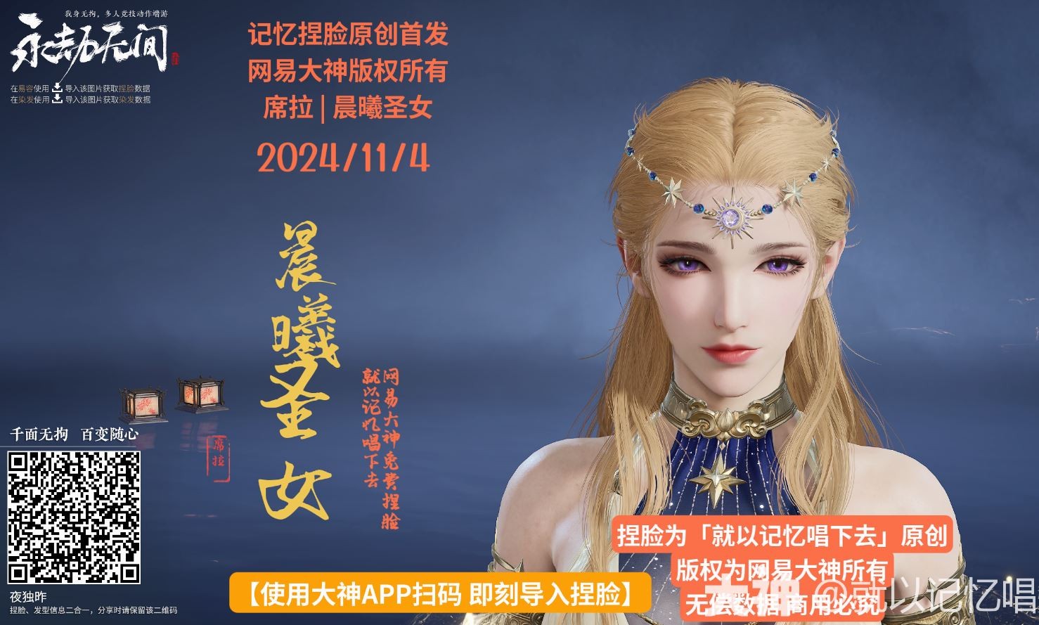 永劫无间:席拉·晨曦圣女,捏脸二维码速递!