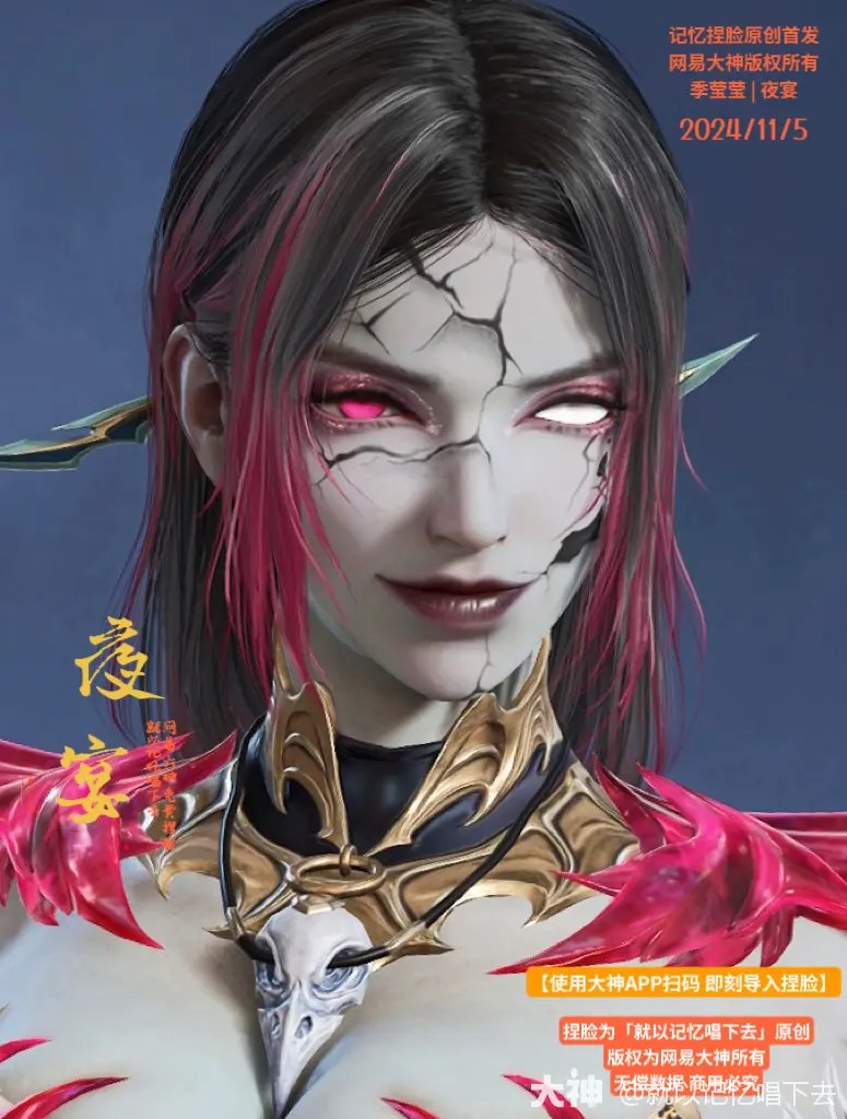 要说这捏脸,那可是《永劫无间》里的一大乐趣,让你充分发挥想象力,把游戏角色打造成独一无二的崽。今天,就给大家带来一份“夜宴”主题的季莹莹捏脸秘籍——二维码一份!保证让你家的莹莹小姐姐,在聚窟洲的夜场里,成为最靓的崽!