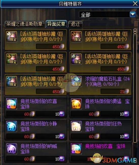兑换商店主要更新的是异面奖章的更新,在体验服第一次更新爆料帝国竞技场,我们知道这里的奖励是5个不同的武器罐子,但是实际上是对应的护甲类型史诗防具罐子,因为配置问题导致显示是英雄袖珍罐,话说难道不是策划偷懒的原因吗?改版后不再是五个不同类型的防具罐子,而是更改为一个【Lv90史诗防具袖珍罐自选礼盒】,一看这个盒子就是之前送的90史诗武器盒子图标来,真是懒得重新设计一个都不行。