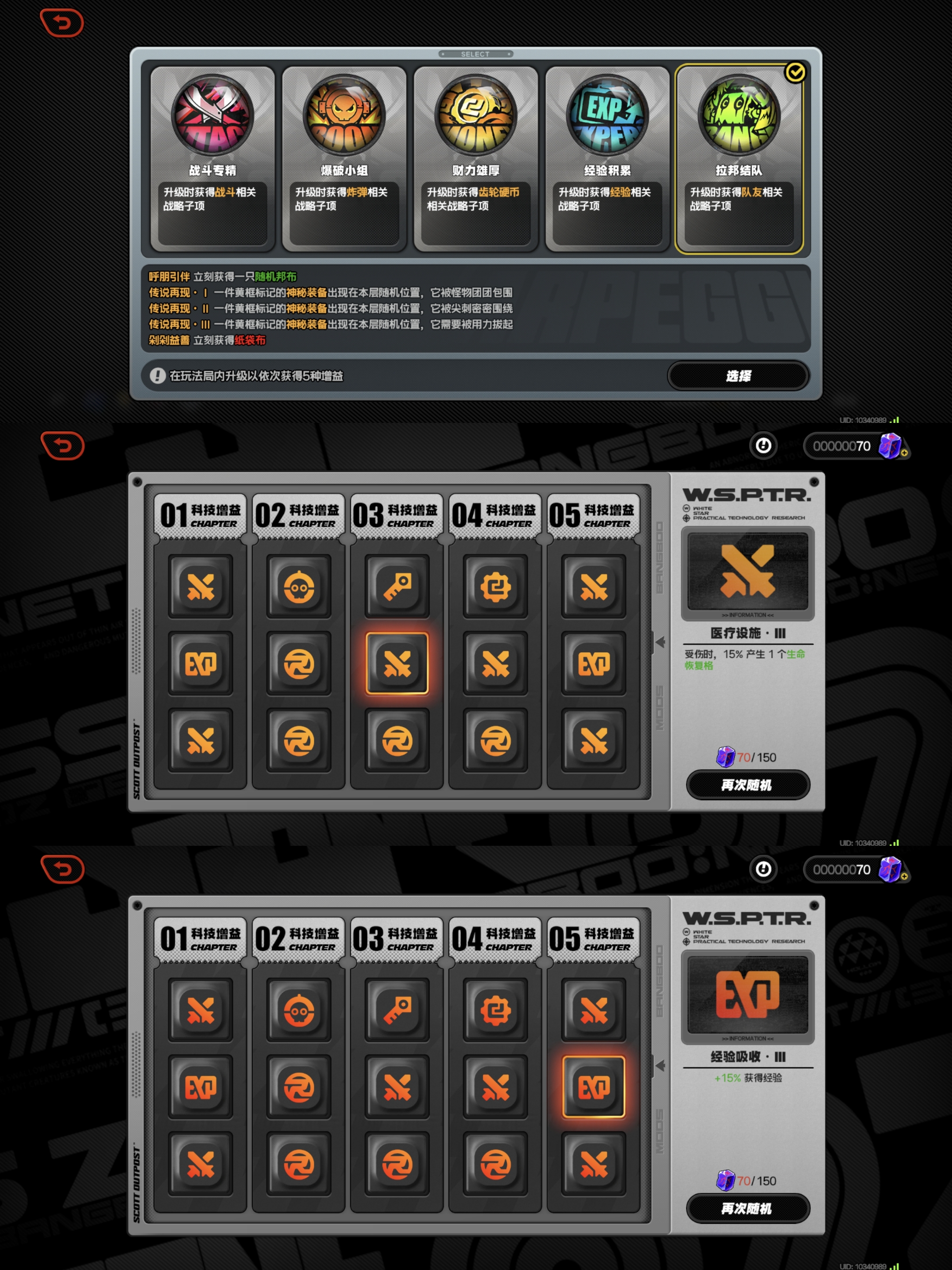 首先,你需要先打通前面四个小关卡,拿到第五层的BUFF入场券。 局外天赋的选择至关重要,请务必选择“医疗设备三”和“经验吸收三”!
