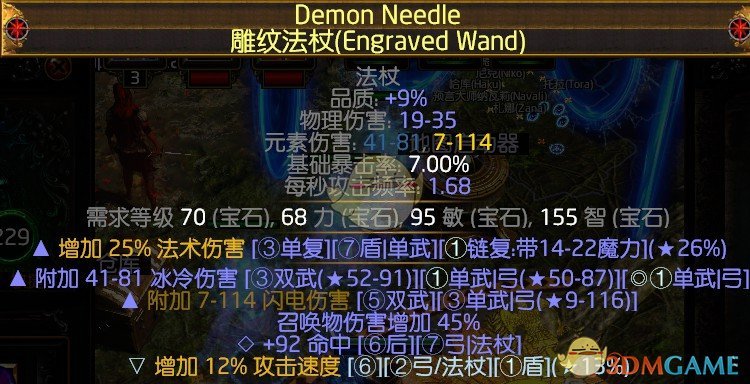 (3)法杖,要使用基础攻速1.5的底子,至少要有召唤物伤害词缀、攻速词缀(可附魔),其余最好有元素点伤,其他诸如元素穿透、元素伤等词缀有更好,但是比较难得。
