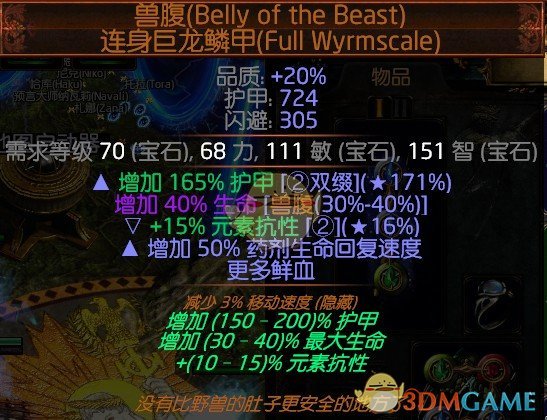 衣服:建议选择兽腹(理由:本bd有大量宝石孔,要使用深渊宝珠,深渊宝珠是增加生命点数而非生命百分比,因此兽腹提高生命百分比的性价比高)