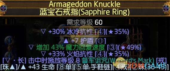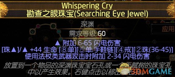 珠宝:勘察之眼,生命词缀+元素点伤(攻击附加或法杖附加点伤,不能有火焰伤),强烈建议珠宝中带一个高roll的攻击致盲敌人,提高生存。