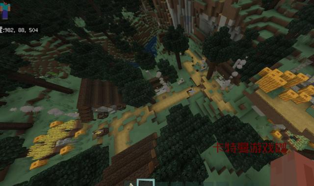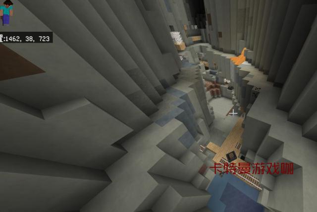 在坐标592.90.466,我们发现了另一个僵尸村庄。这个村庄更惨,直接被两条峡谷劈成了两半。看来这个版本对僵尸村庄是真爱啊,数量多到让人怀疑人生。