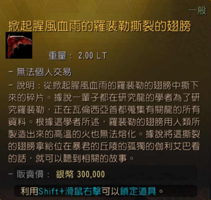 1. 首先,你要拿到“掀起腥风血雨的罗裴勒撕裂的翅膀”。