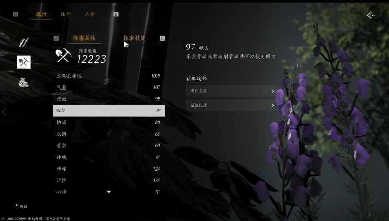 后续收集到的“奇珍”也要交给齐声,这玩意儿前期非常重要!可以提升攻击、血量、防御等属性,还能增加耐力上限、精元上限,扩充奇术格子,学习心法和轻功等等,好处多到数不过来!全部点亮后还能获得“黄钟碎片”,削弱野外精英BOSS,简直是神器!