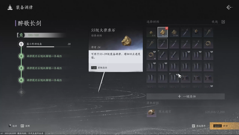 优先用同等级的律准石或者装备来调律,全等级的律准石先不要用!