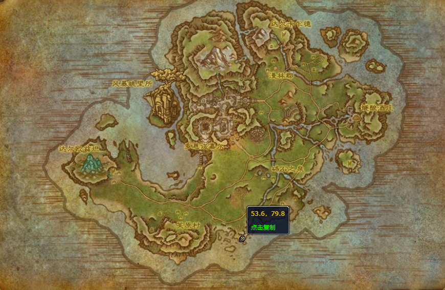 答案揭晓!加尔罗克的秘密基地坐标是:53.6,79.8。记好了,别迷路哦!万一找不到,可别怪我没提醒你带上指南针!