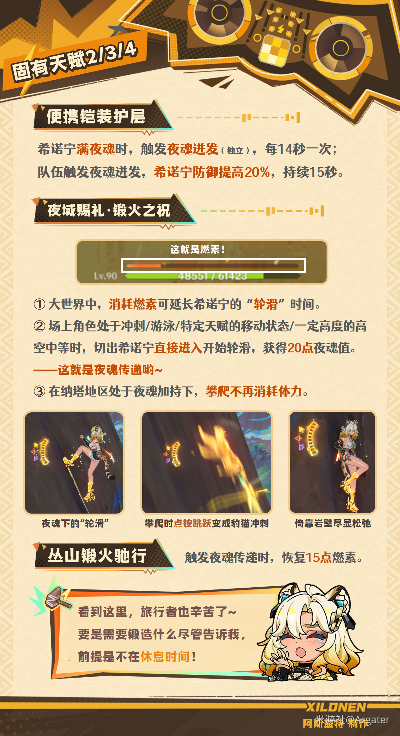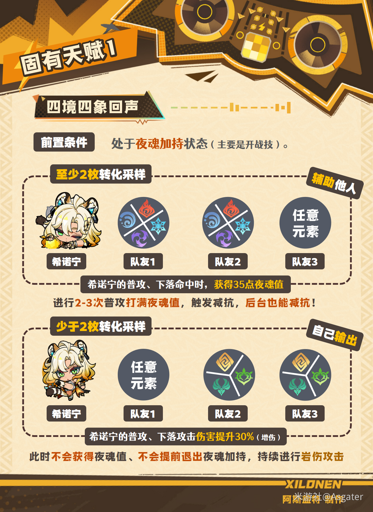 ③ 一定程度上优化场上角色的输出容错率,同时降低夜魂消耗可让希诺宁打出5套完整普攻、对岩伤输出有一定提升。
