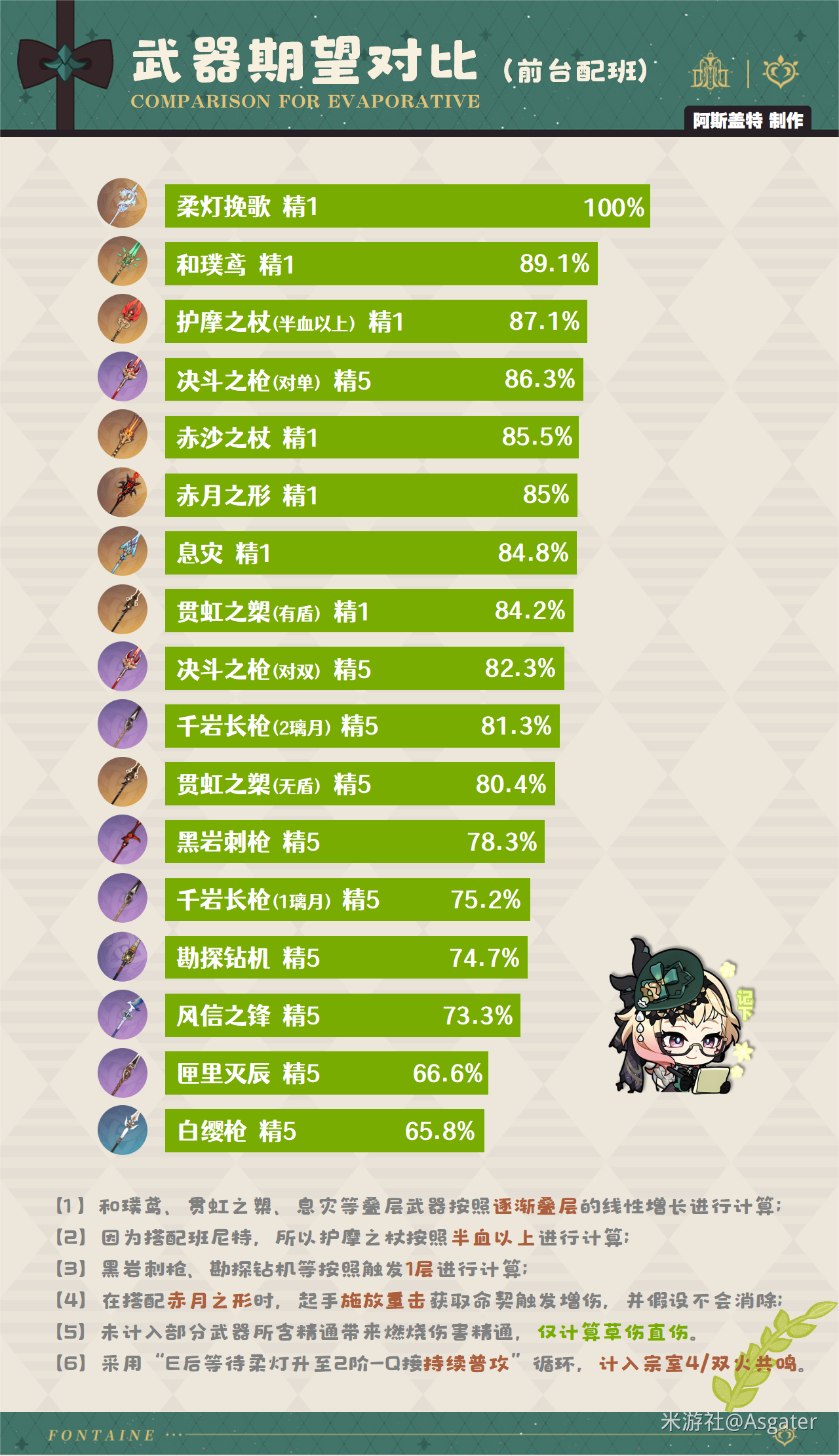 ◆ 这套玩法更多是一种拓展思路——燃烧可以增加水C触发蒸发的次数,“调香师”的加入可以优化队伍的挂草“转火能力”。这套阵容的那维莱特还是以水元素伤害为主,蒸发只是“锦上添花”。