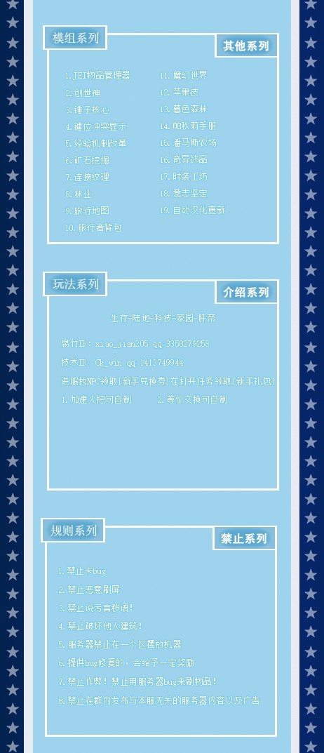 隆重介绍:时之隙 - [1.12.2]版本,一个让你体验新科技时代的乐园!在这里,你可以玩转科技、感受加速火把的威力、体验等价交换的乐趣,还有AE、工业2、植物魔法和模块化等各种黑科技等你来探索。最良心的是,开服就送5根加速火把,让你赢在起跑线!