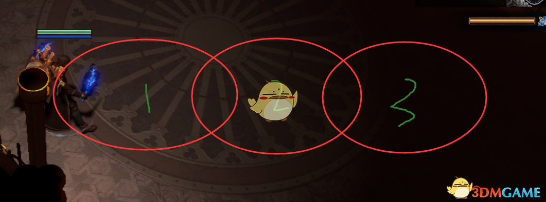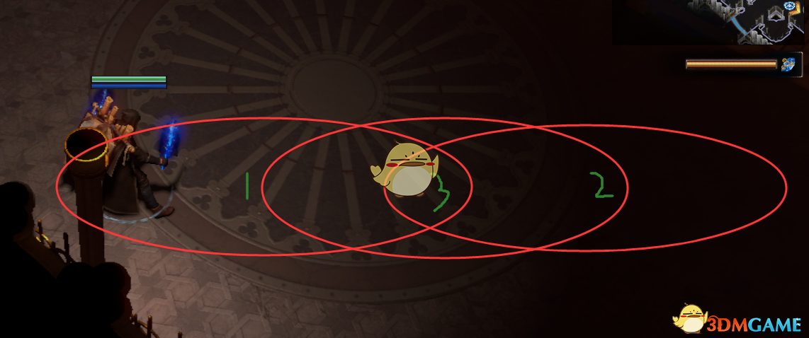 这是70范围带集中效应的示意图重叠的范围非常小但是还是能打出两次爆炸重叠的。