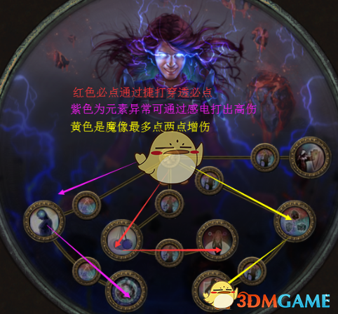 它的造成伤害的模式是路径 范围 爆炸圈 击中伤害,对路劲上造成3个爆炸圈(可以通过宝珠增加次数)