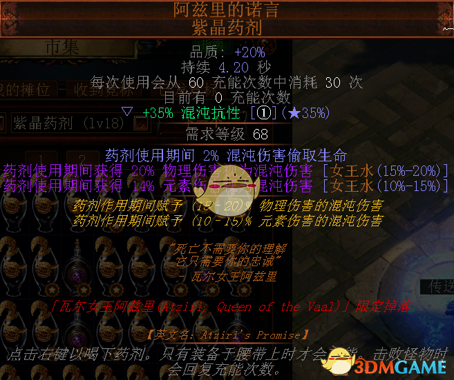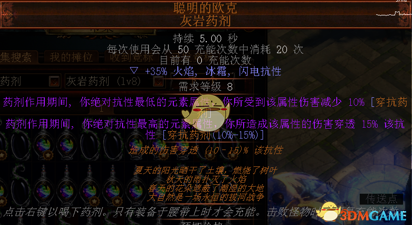 常规:生命药剂、魔力药剂、水银药剂、真银药剂、石英药剂(暴击流可带一瓶宝钻)