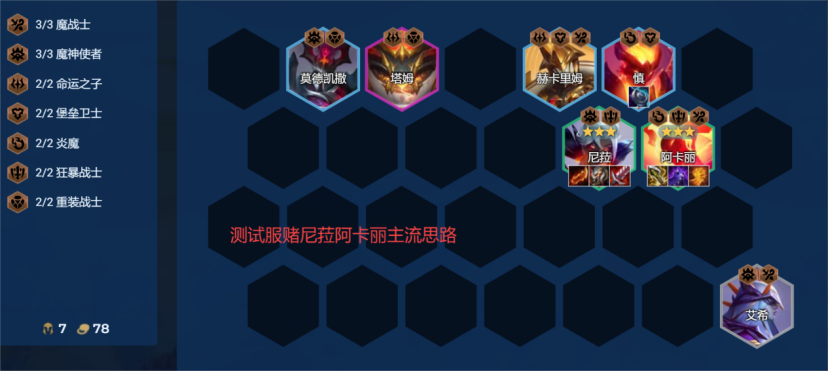 阿卡丽和尼菈3星后:升7人口,补上内瑟斯,凑出3炎魔+2换形师羁绊。