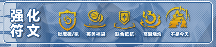 最优符文:炎魔徽/冕、英勇福袋、联合抵抗、高温烧灼、不是今天