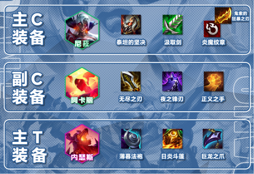 这套阵容的运营非常简单,没什么好说的,记住一点:别硬玩!开局装备和英雄契合,再考虑这套路子。