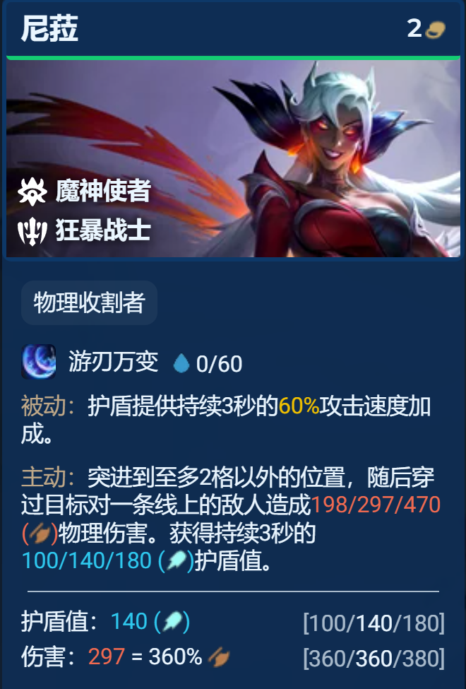 狂暴战士羁绊,让阿卡丽拥有10%的全能吸血,增强续航能力。同时,2狂暴羁绊还能提供10%的额外增伤,让阿卡丽和尼菈的输出更上一层楼!