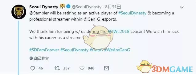 2018年8月31日,首尔王朝队辅助选手Heo“Gambler”Jin-woo宣布退役并转型为主播。