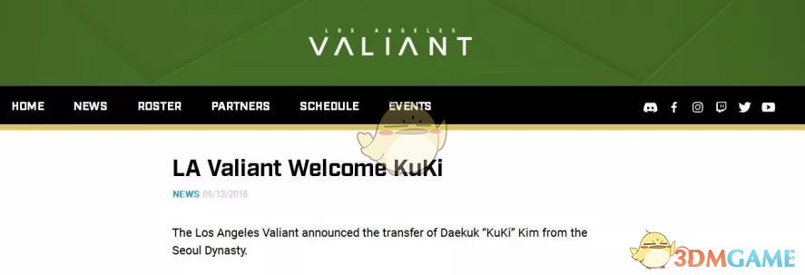 2018年9月13日,首尔王朝队官方推特宣布队内主T选手Kim“Kuki”Dae-Kuk转会至洛杉矶英勇队。