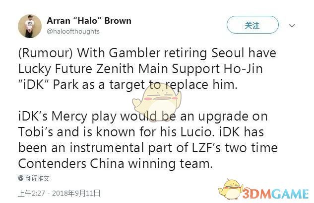 2018年9月25日,有流言爆料龙之队正在追求输出选手Diem。