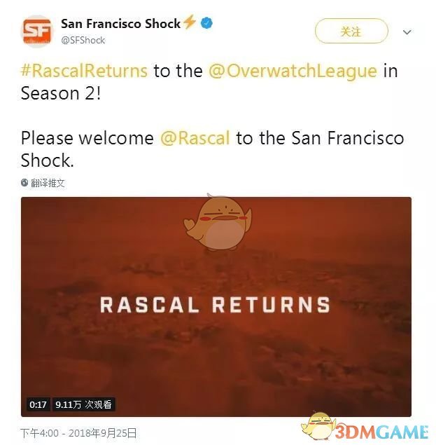 如今,旧金山震动队给了Rascal一个重返OWL赛场的机会。这是否意味着旧金山震动队认为他们能够把控Rascal的言行举止,并能兑现他的所有天赋?让我们拭目以待。