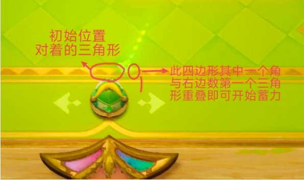 9、接下来,轮到绿色雀雀球上场了!无论你遇到哪种情况,都采取统一策略:当指针转到右下角红框里的三角形弹板左边的角时(实在找不到?看下图!),果断出手!
