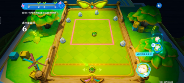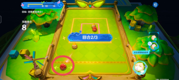 2、这个绿皮小子可不简单,它进框之后会释放一个范围冲击波,像个炸弹一样把周围的雀雀球统统弹开!看看下图,是不是感觉整个世界都清净了?至于剩下的两个雀雀球嘛...就随缘吧!随便点点蓄力,说不定就进去了呢!这就是传说中的“玄学打法”!